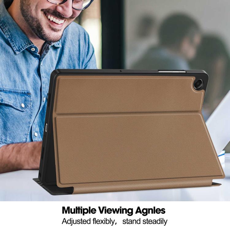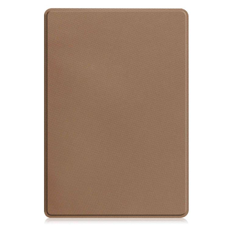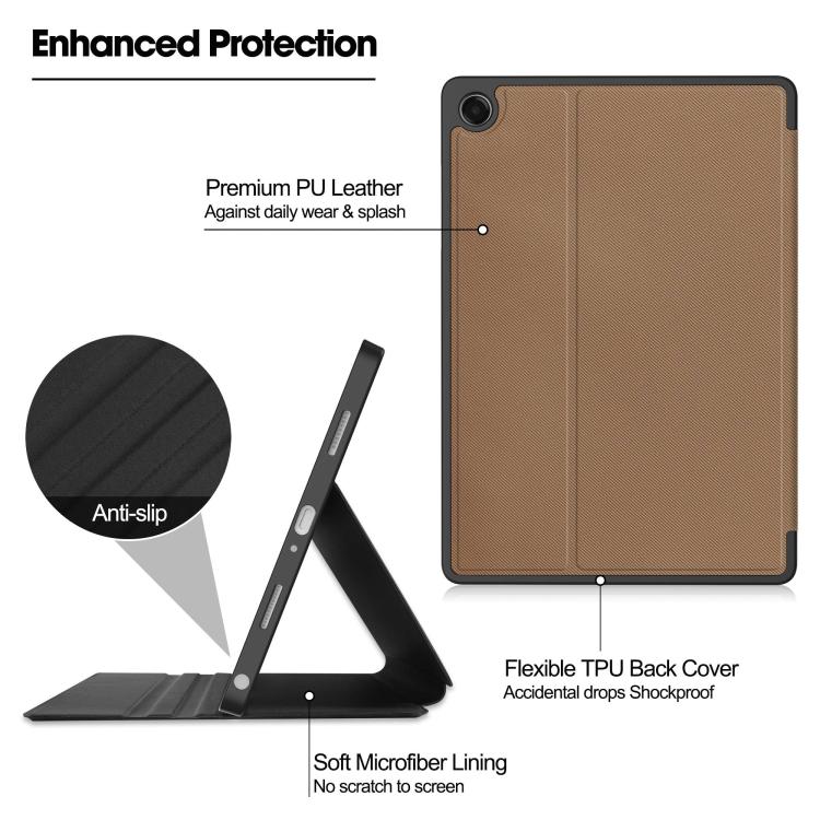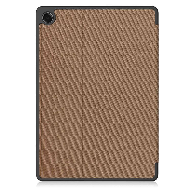 For Samsung Galaxy Tab A11+ Twill Fabric Vegan Leather Smart Tablet Case with Pen Tray & Holder(Brown)