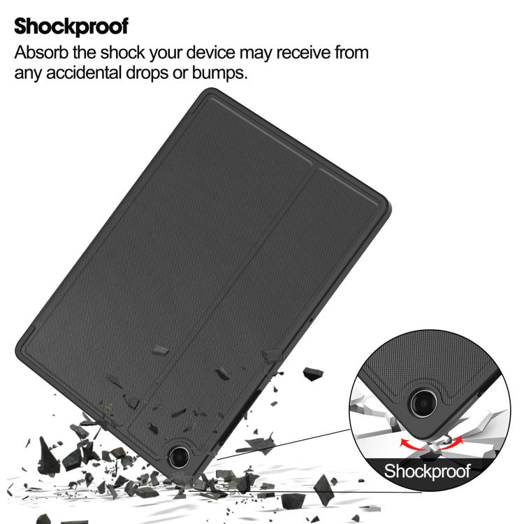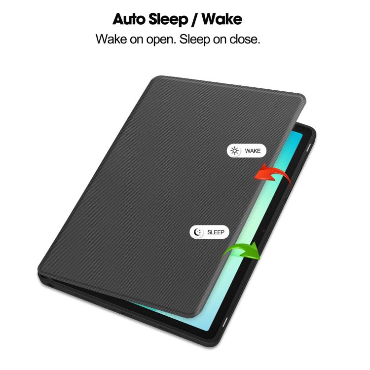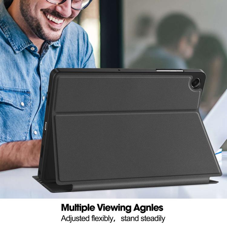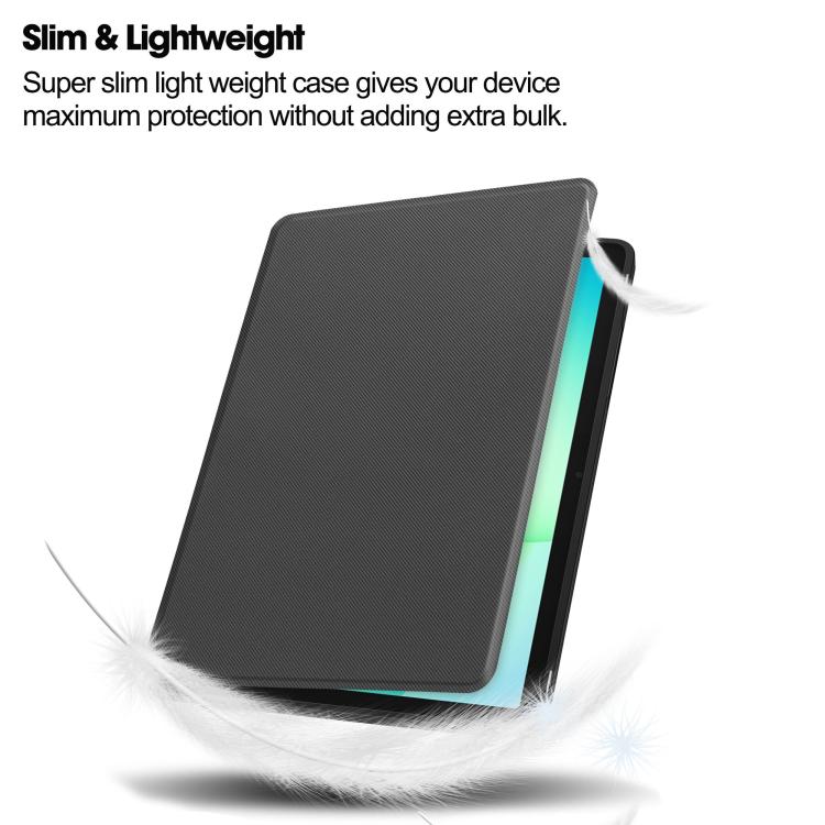For Samsung Galaxy Tab A11+ Twill Fabric Vegan Leather Smart Tablet Case with Pen Tray & Holder(Grey)