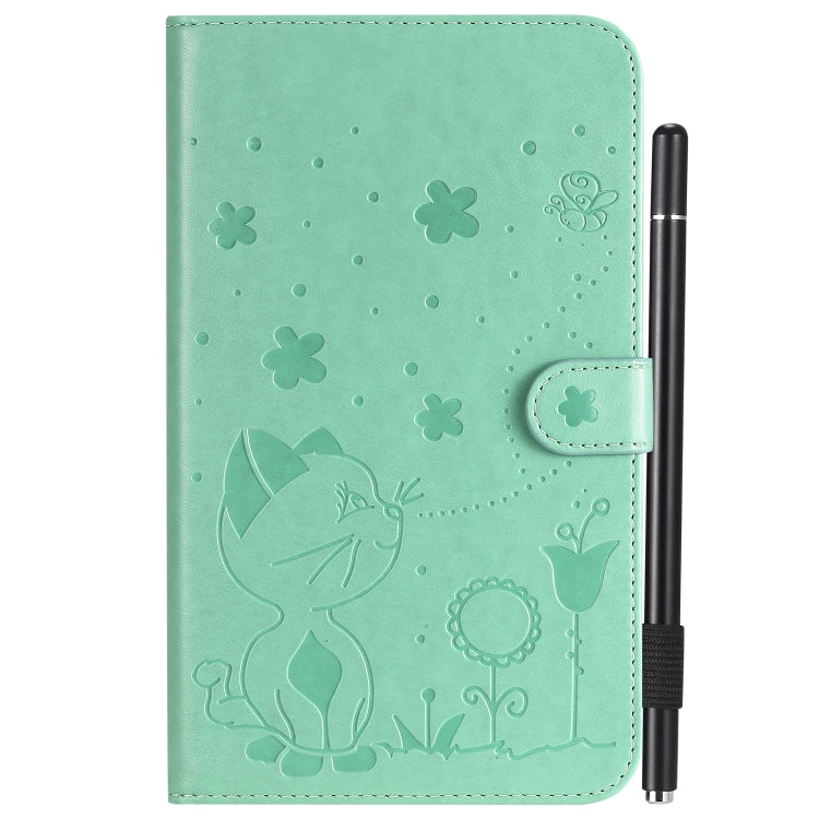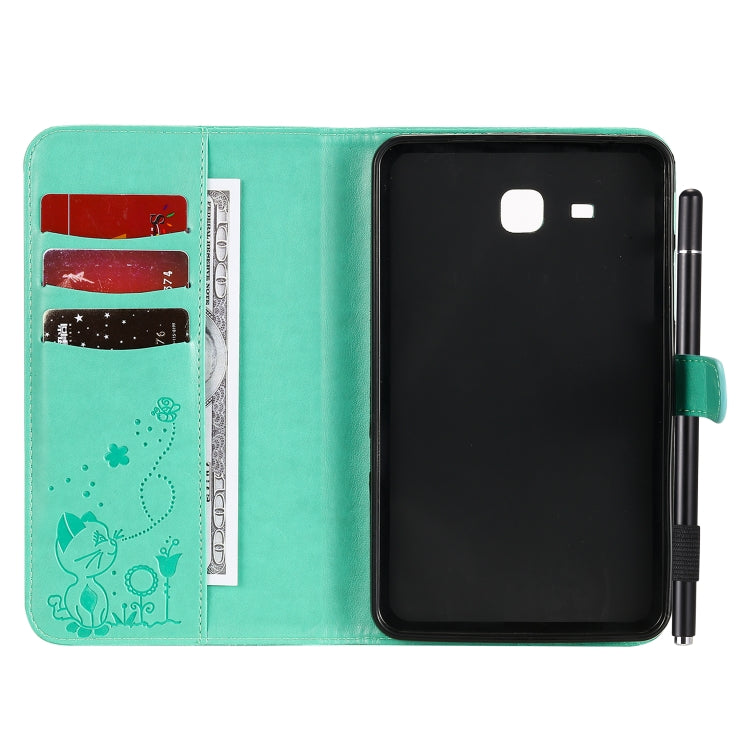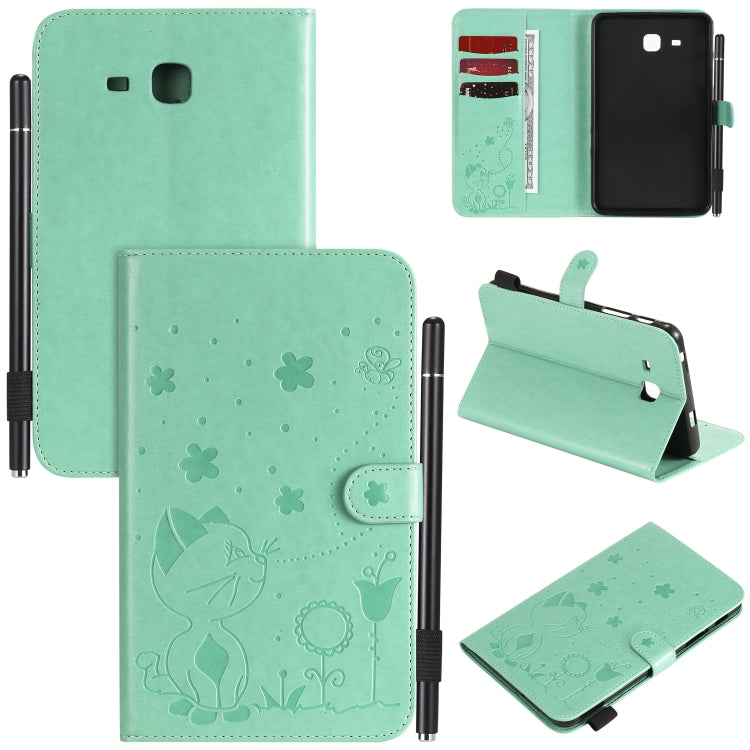 For Samsung Galaxy Tab A7.0 (2016) T280 Cat Bee Embossing Pattern Shockproof Table PC Protective Horizontal Flip Leather Case with Holder & Card Slots & Wallet & Pen Slot & Wake-up / Sleep Function(Green)