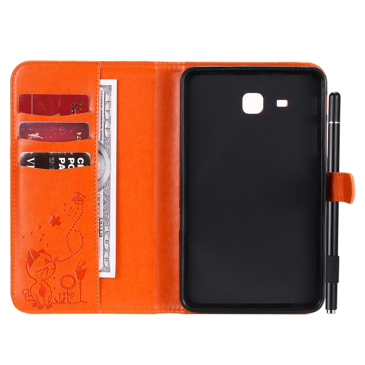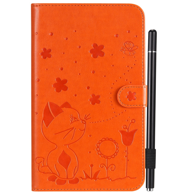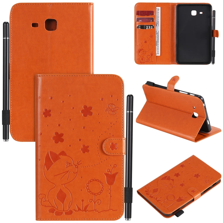 For Samsung Galaxy Tab A7.0 (2016) T280 Cat Bee Embossing Pattern Shockproof Table PC Protective Horizontal Flip Leather Case with Holder & Card Slots & Wallet & Pen Slot & Wake-up / Sleep Function(Orange)