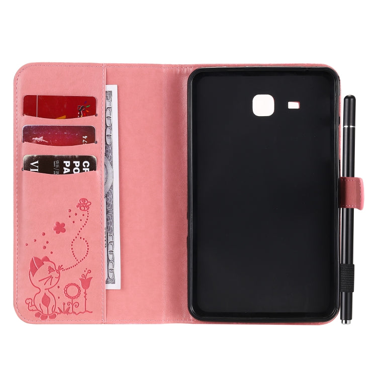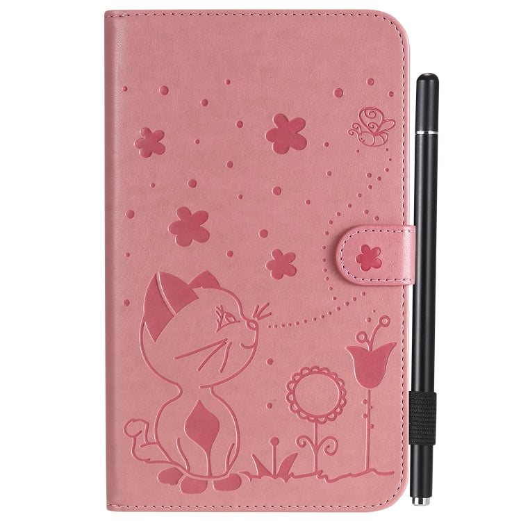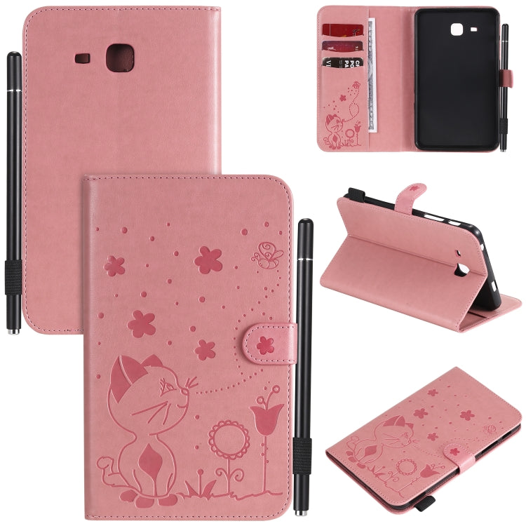 For Samsung Galaxy Tab A7.0 (2016) T280 Cat Bee Embossing Pattern Shockproof Table PC Protective Horizontal Flip Leather Case with Holder & Card Slots & Wallet & Pen Slot & Wake-up / Sleep Function(Pink)