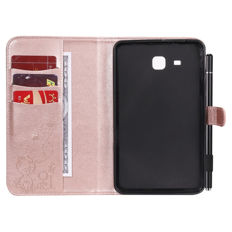 For Samsung Galaxy Tab A7.0 (2016) T280 Cat Bee Embossing Pattern Shockproof Table PC Protective Horizontal Flip Leather Case with Holder & Card Slots & Wallet & Pen Slot & Wake-up / Sleep Function(Rose Gold)