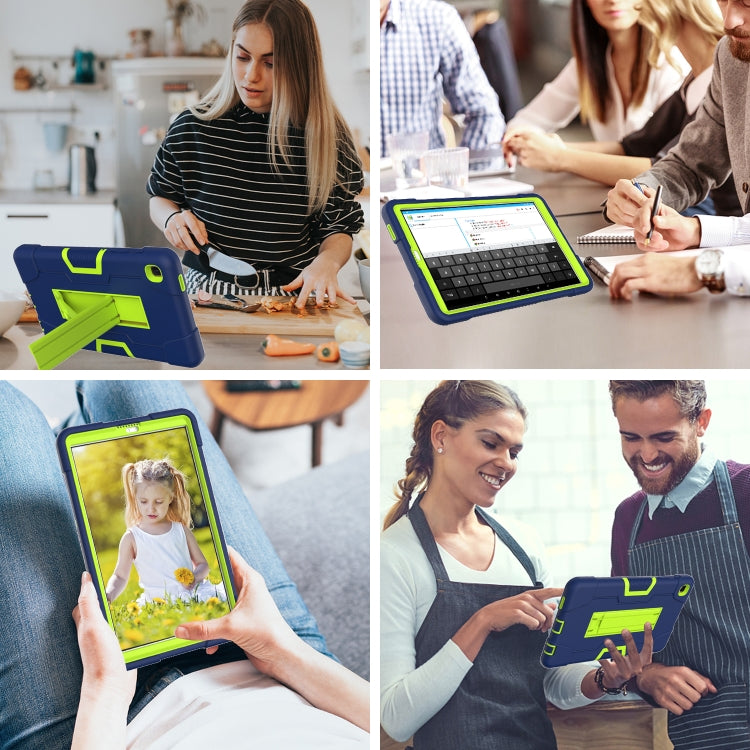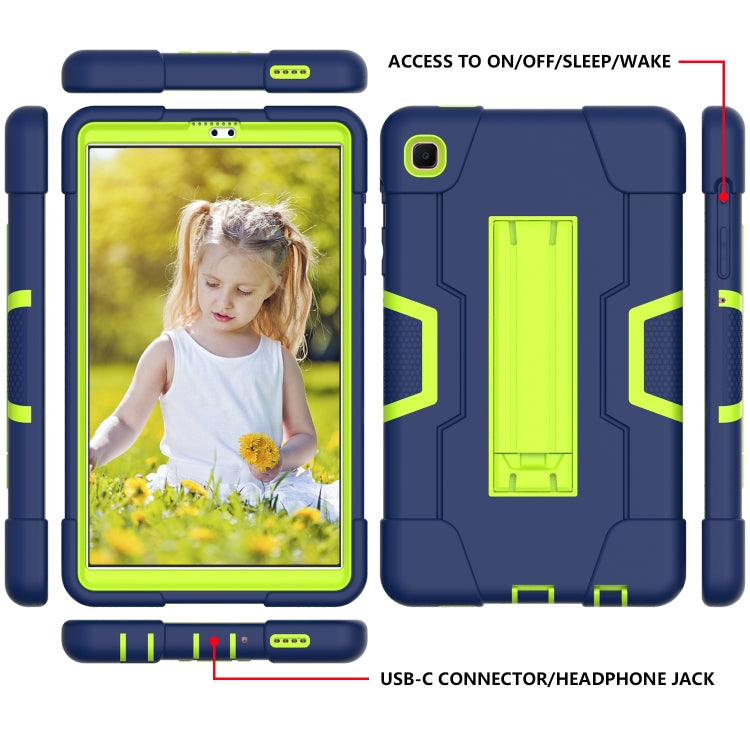 For Samsung Galaxy Tab A7 10.4 (2020) Contrast Color Robot Shockproof Silicone + PC Protective Case with Holder(Navy Blue + Yellow Green)
