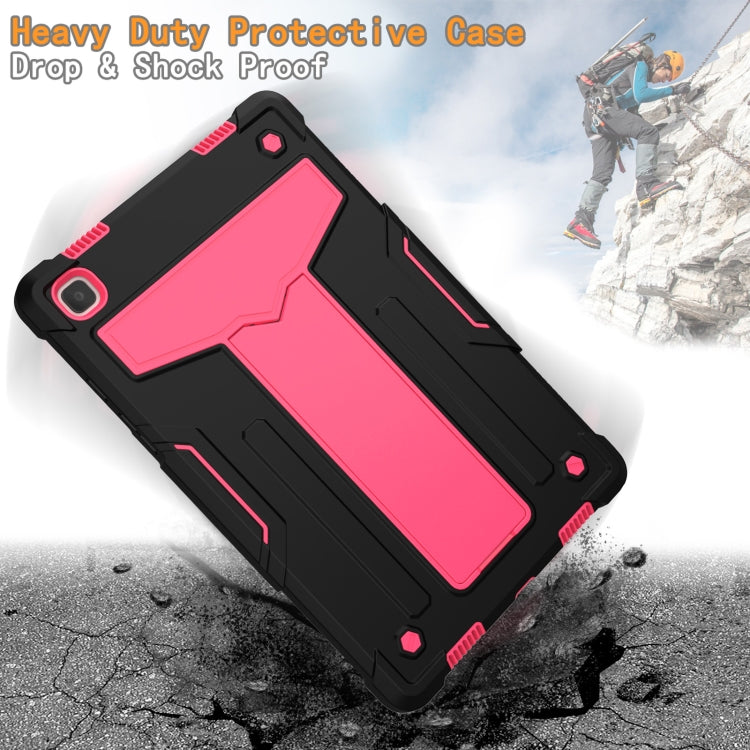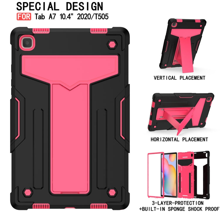 For Samsung Galaxy Tab A7 10.4 (2020) T-shaped Bracket Contrast Color Shockproof PC + Silicone Protective Case(Black+Rose Red)