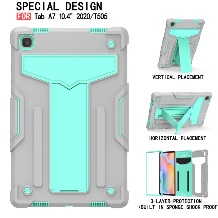 For Samsung Galaxy Tab A7 10.4 (2020) T-shaped Bracket Contrast Color Shockproof PC + Silicone Protective Case(Grey+Mint Green)