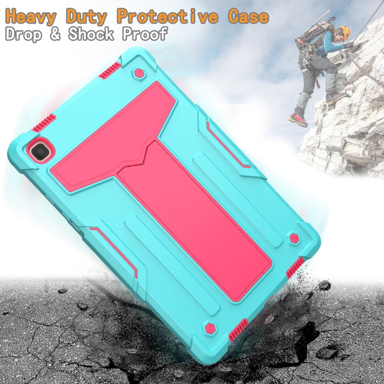 For Samsung Galaxy Tab A7 10.4 (2020) T-shaped Bracket Contrast Color Shockproof PC + Silicone Protective Case(Mint Green+Rose Red)