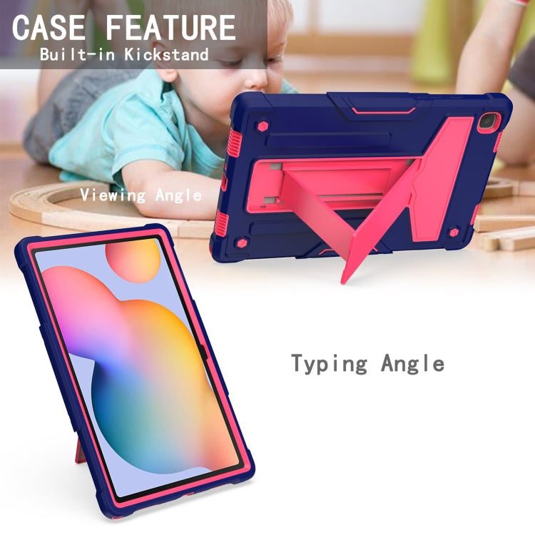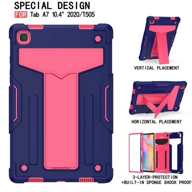 For Samsung Galaxy Tab A7 10.4 (2020) T-shaped Bracket Contrast Color Shockproof PC + Silicone Protective Case(Navy+Rose Red)