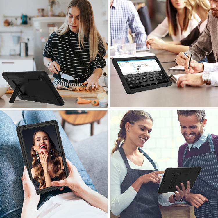 For Samsung Galaxy Tab A7 10.4 (2020) T500 Contrast Color Robot Shockproof Silicon + PC Protective Case with Holder(Black)