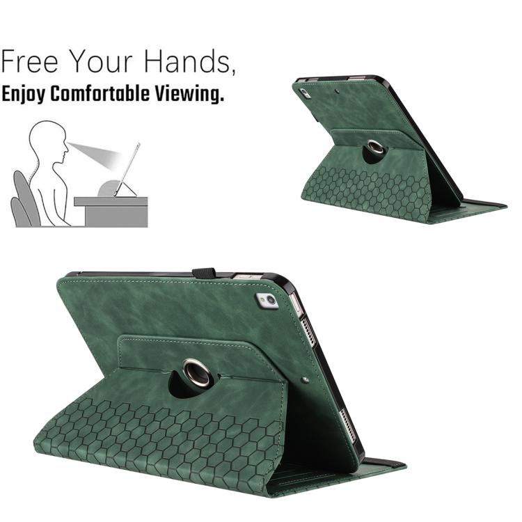 For Samsung Galaxy Tab A7 10.4 2020 T500 Rotatable Honeycomb Embossed Smart Leather Tablet Case(Green)