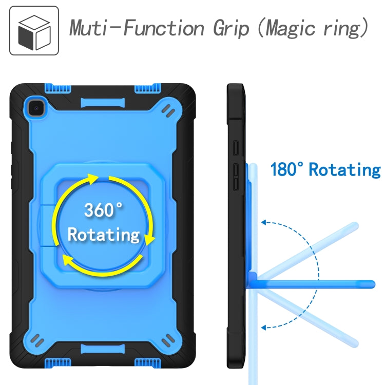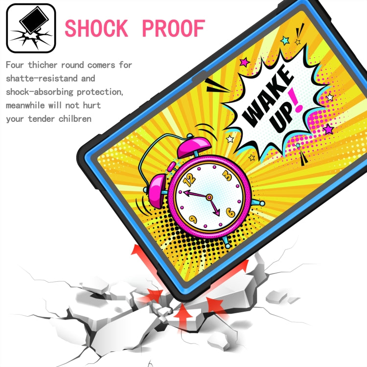 For Samsung Galaxy Tab A7 10.4 (2020) T500 / T505 Contrast Color Shockproof Robot Silicone + PC Case with Wristband Holder(Black + Blue)