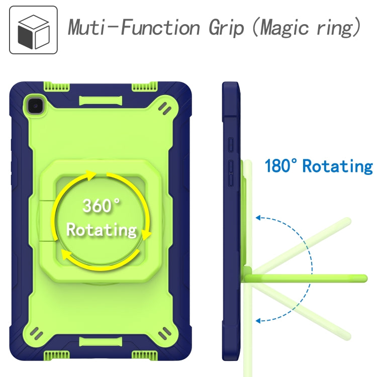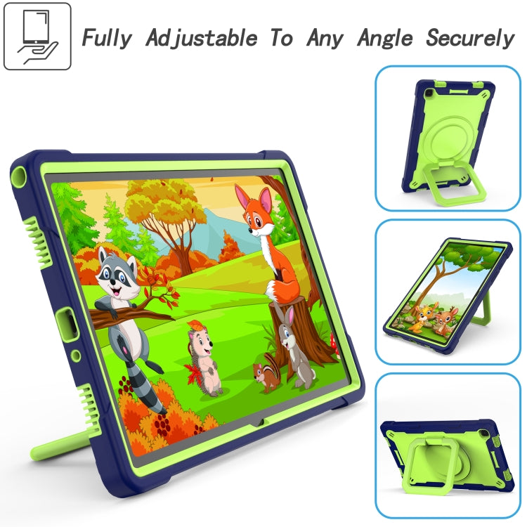 For Samsung Galaxy Tab A7 10.4 (2020) T500 / T505 Contrast Color Shockproof Robot Silicone + PC Case with Wristband Holder(Navy Blue + Yellow-green)