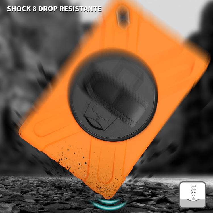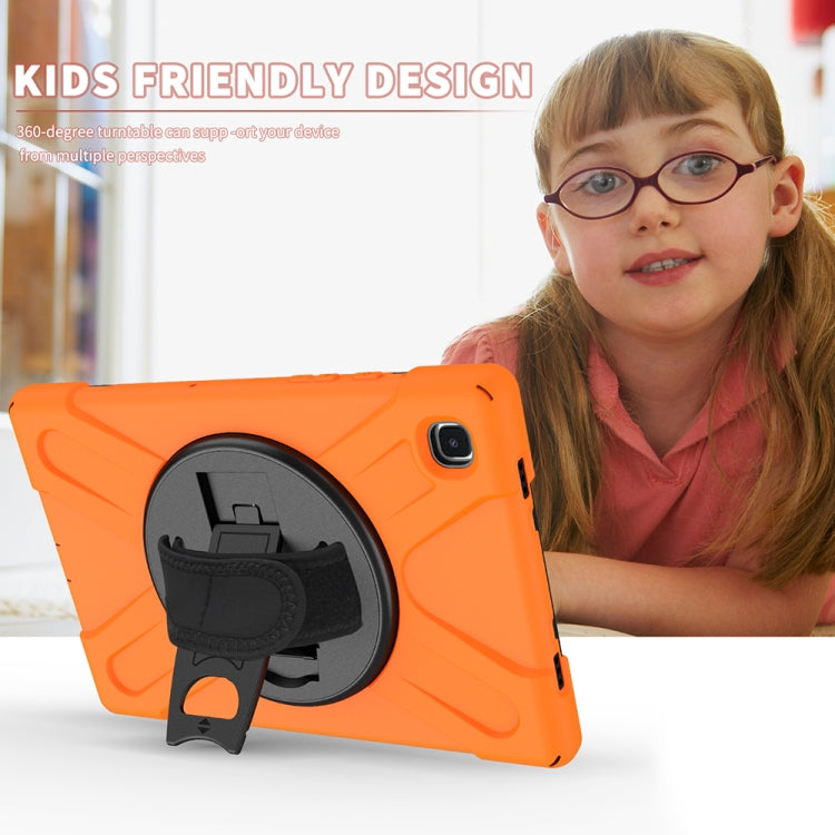 For Samsung Galaxy Tab A7 (2020) T500/T505 360 Degree Rotation PC + Silicone Protective Case with Holder & Hand-strap(Orange)