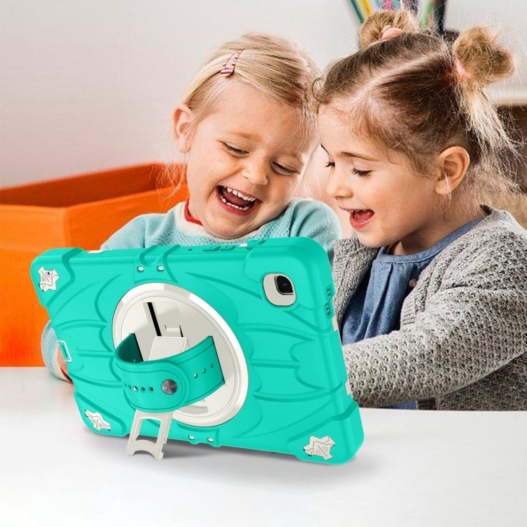 For Samsung Galaxy Tab A7 Lite Bat Hand Grip Turntable Stand Tablet Case(Mint Green White)