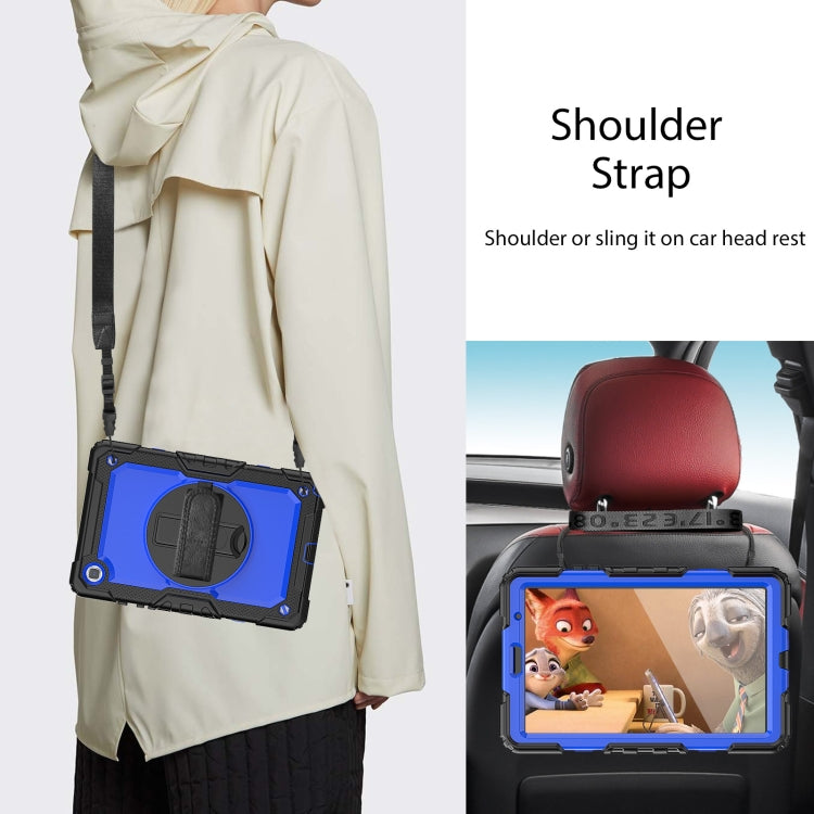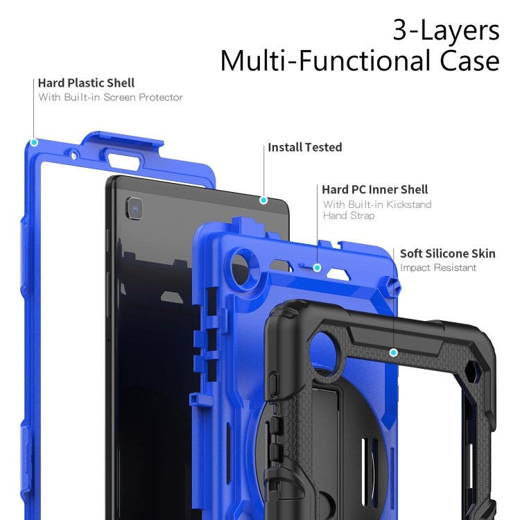 For Samsung Galaxy Tab A7 Lite T220 Silicone Hybrid PC Tablet Case with Shoulder Strap(Dark Blue + Black)