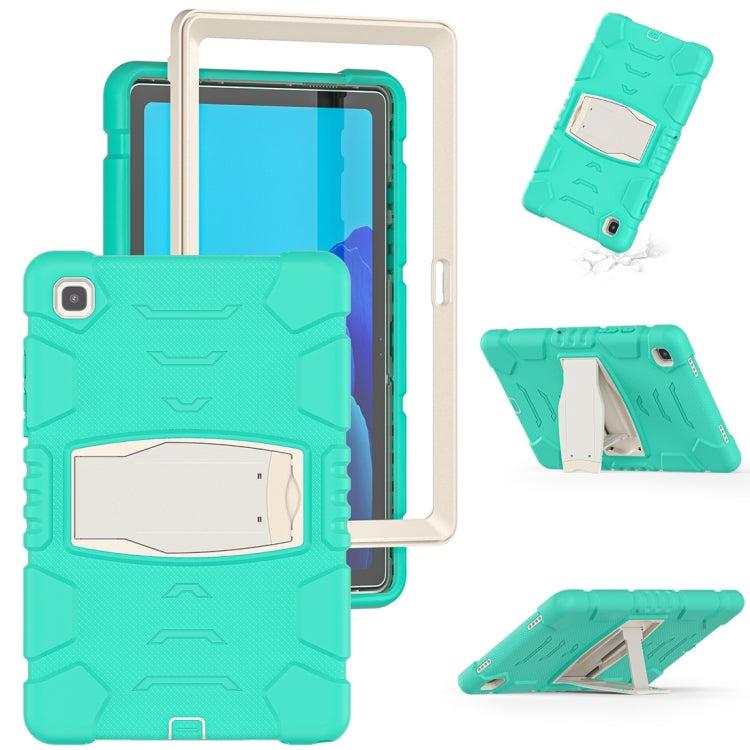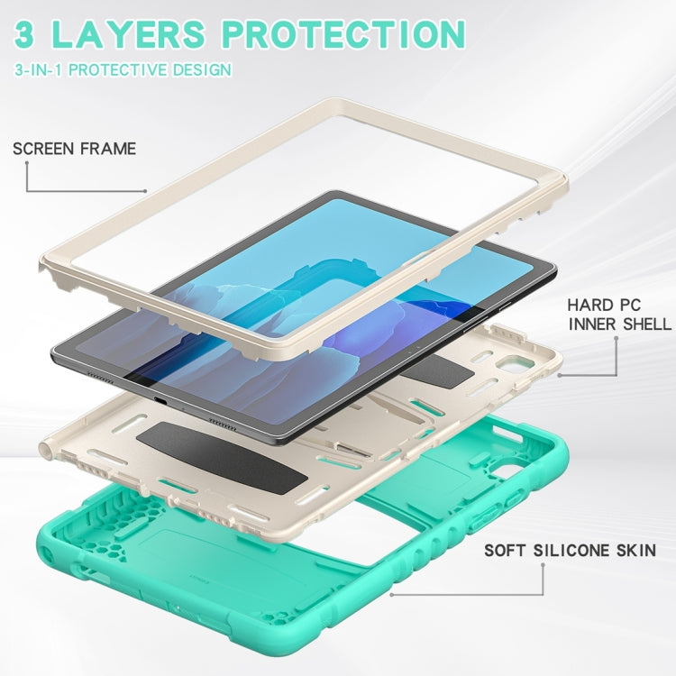 For Samsung Galaxy Tab A7 T500 3-Layer Protection Screen Frame + PC + Silicone Shockproof Combination Case with Holder(Mint Green)