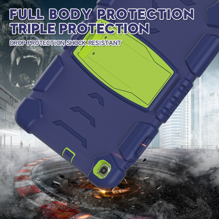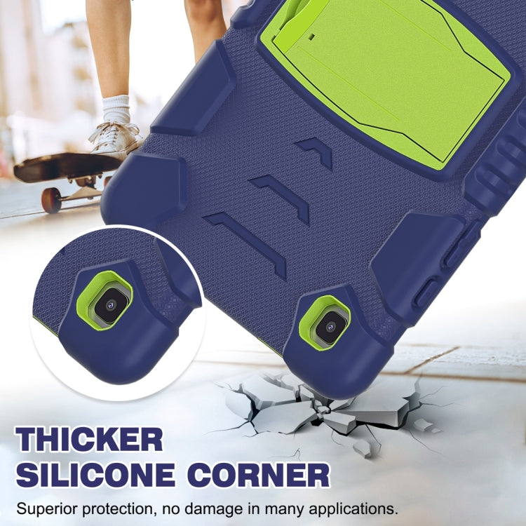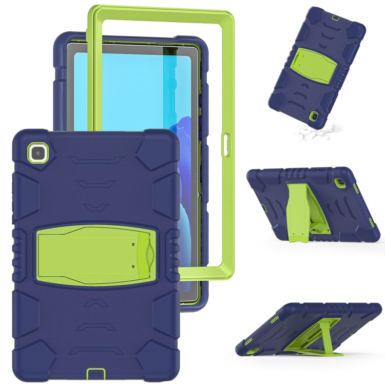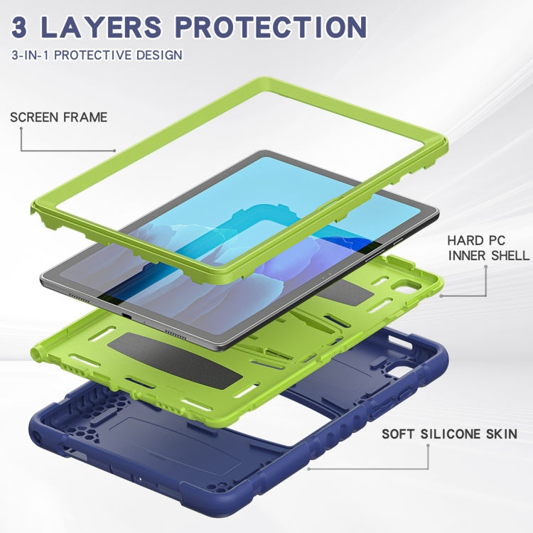 For Samsung Galaxy Tab A7 T500 3-Layer Protection Screen Frame + PC + Silicone Shockproof Combination Case with Holder(NavyBlue+Lime)