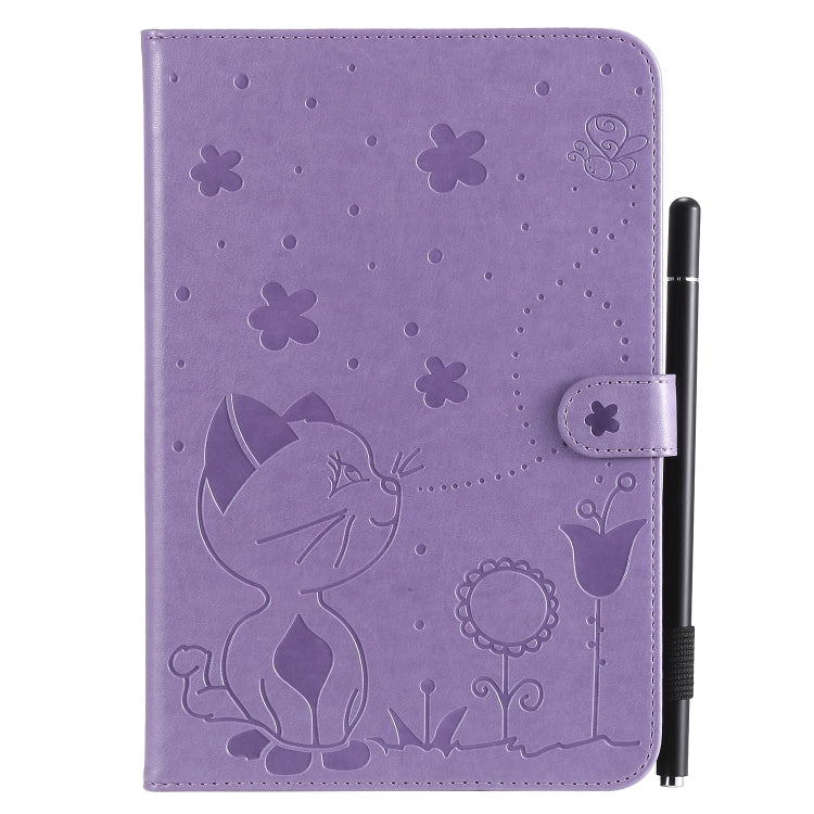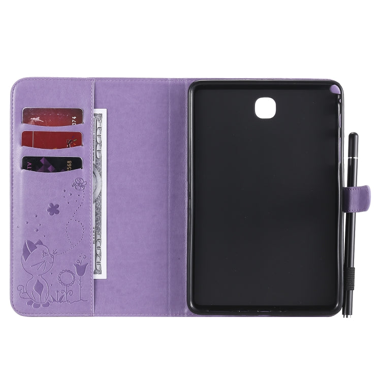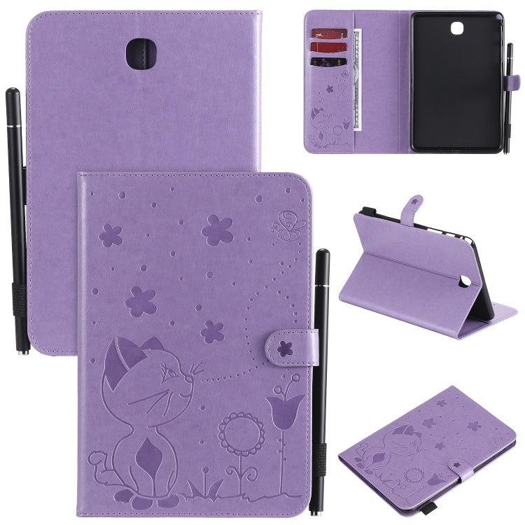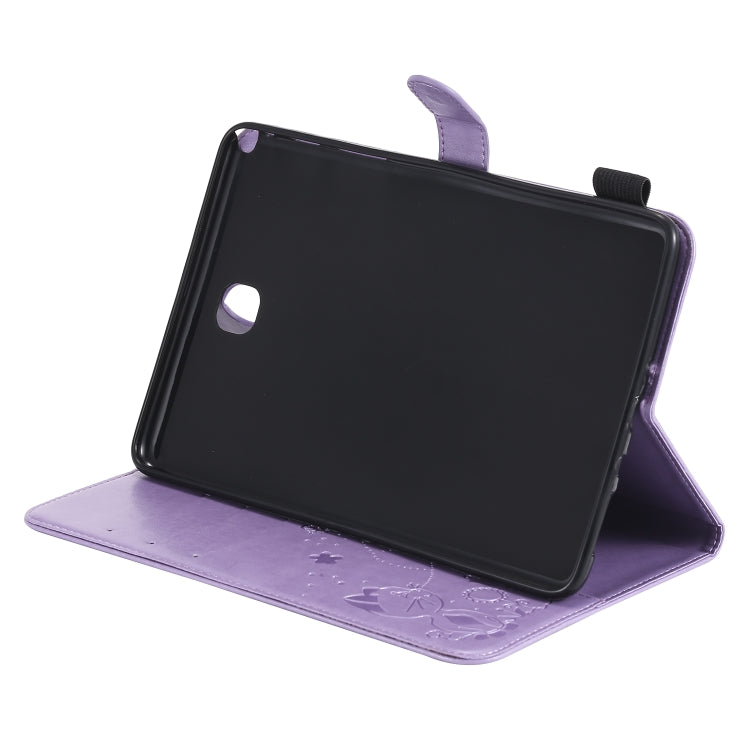 For Samsung Galaxy Tab A8.0 (2015) T350 Cat Bee Embossing Pattern Shockproof Table PC Protective Horizontal Flip Leather Case with Holder & Card Slots & Wallet & Pen Slot & Wake-up / Sleep Function(Purple)