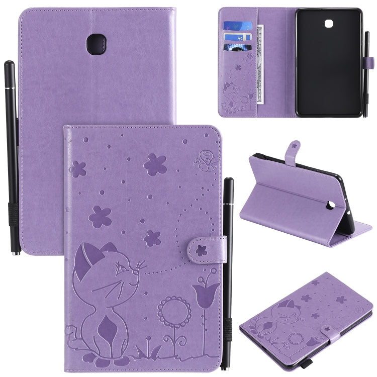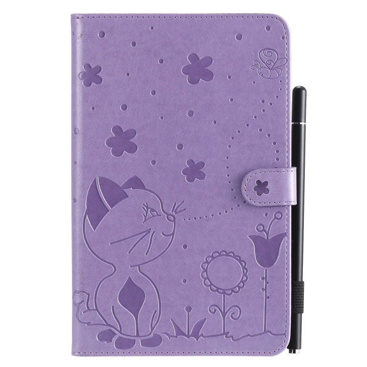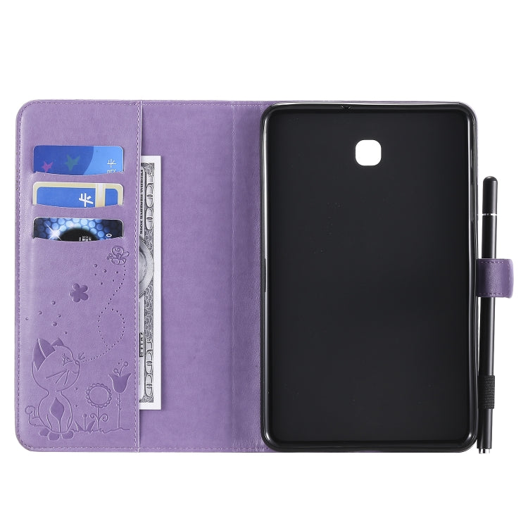 For Samsung Galaxy Tab A8.0 (2018) T387 Cat Bee Embossing Pattern Shockproof Table PC Protective Horizontal Flip Leather Case with Holder & Card Slots & Wallet & Pen Slot(Purple)