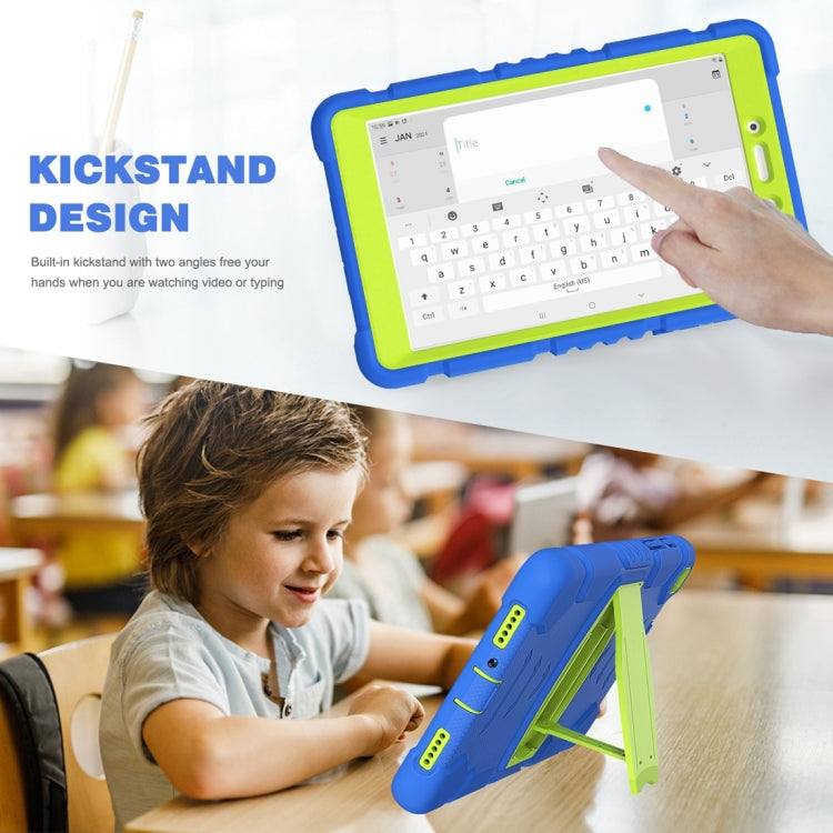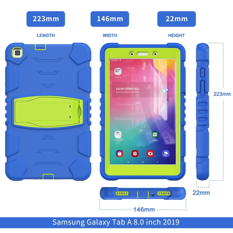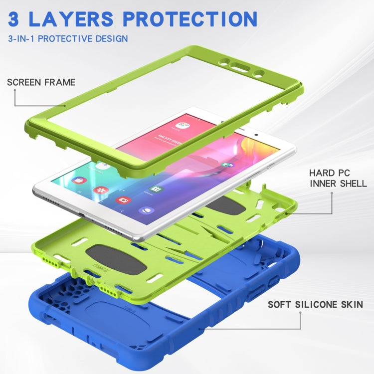 For Samsung Galaxy Tab A8.0 2019 T290 3-Layer Protection Screen Frame + PC + Silicone Shockproof Combination Case with Holder(Blue+Lime)