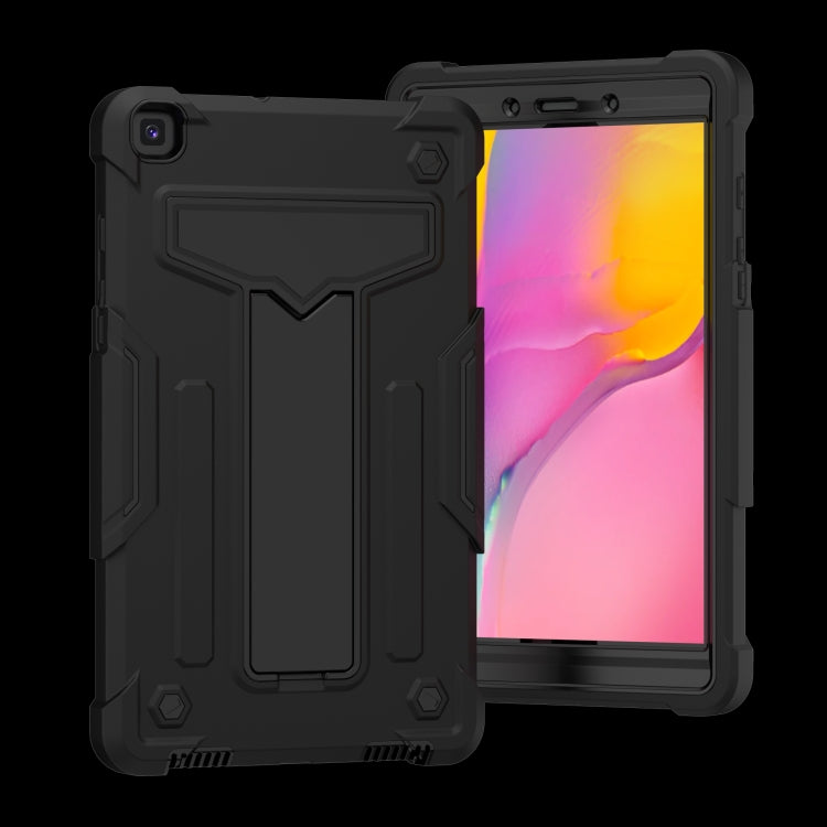 For Samsung Galaxy Tab A8.0 (2019) T290 T-shaped Bracket Contrast Color Shockproof PC + Silicone Flat Protective Case(Black+Black)