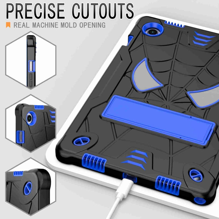 For Samsung Galaxy Tab A8 10.5 2021 Spider Texture Silicone Hybrid PC Tablet Case with Shoulder Strap(Black + Blue)