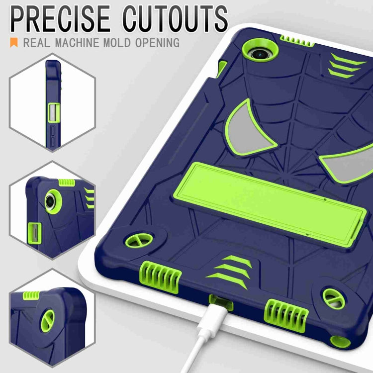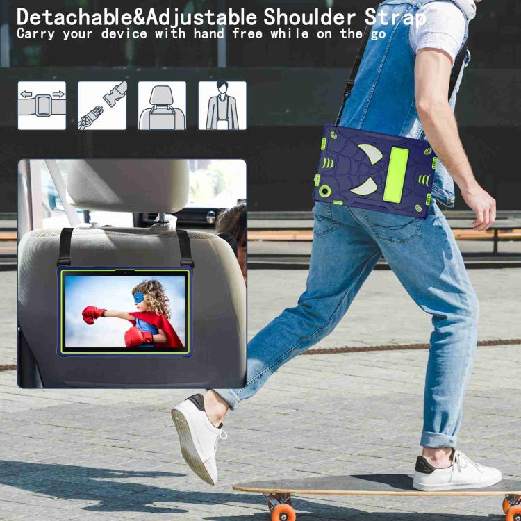 For Samsung Galaxy Tab A8 10.5 2021 Spider Texture Silicone Hybrid PC Tablet Case with Shoulder Strap(Navy Blue + Yellow Green)