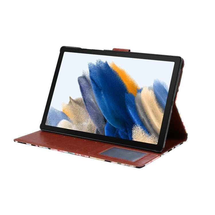 For Samsung Galaxy Tab A8 10.5 2021 X200 / X205 Flower Cloth Leather Smart Tablet Case(Black)