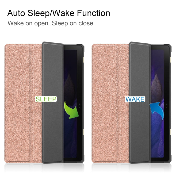 For Samsung Galaxy Tab A8 2021 SM-X205 3-Fold Holder Leather Tablet Case(Rose Gold)