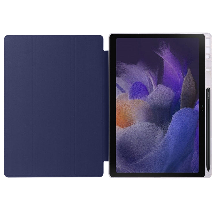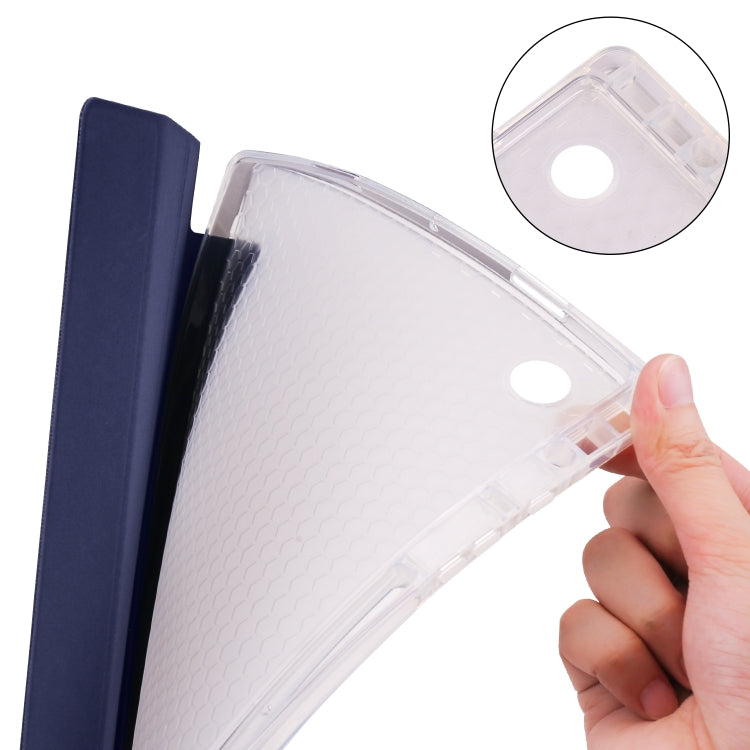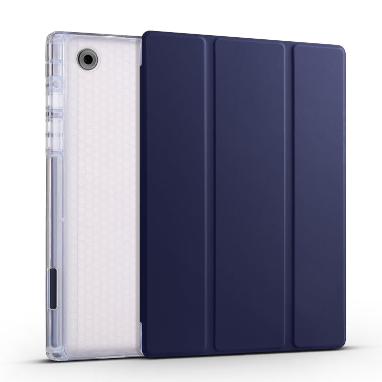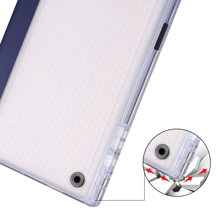 For Samsung Galaxy Tab A8 X200 Smart 3-folding Transparent Honeycomb TPU + Leather Tablet Case(Dark Blue)