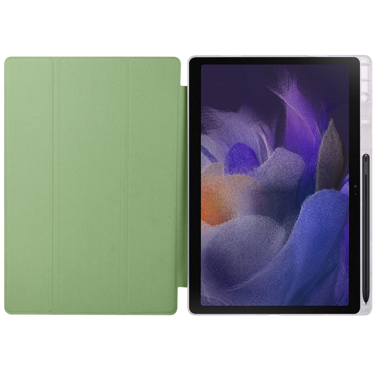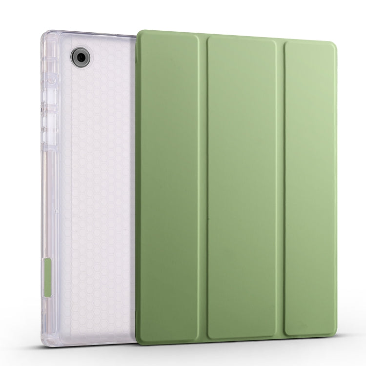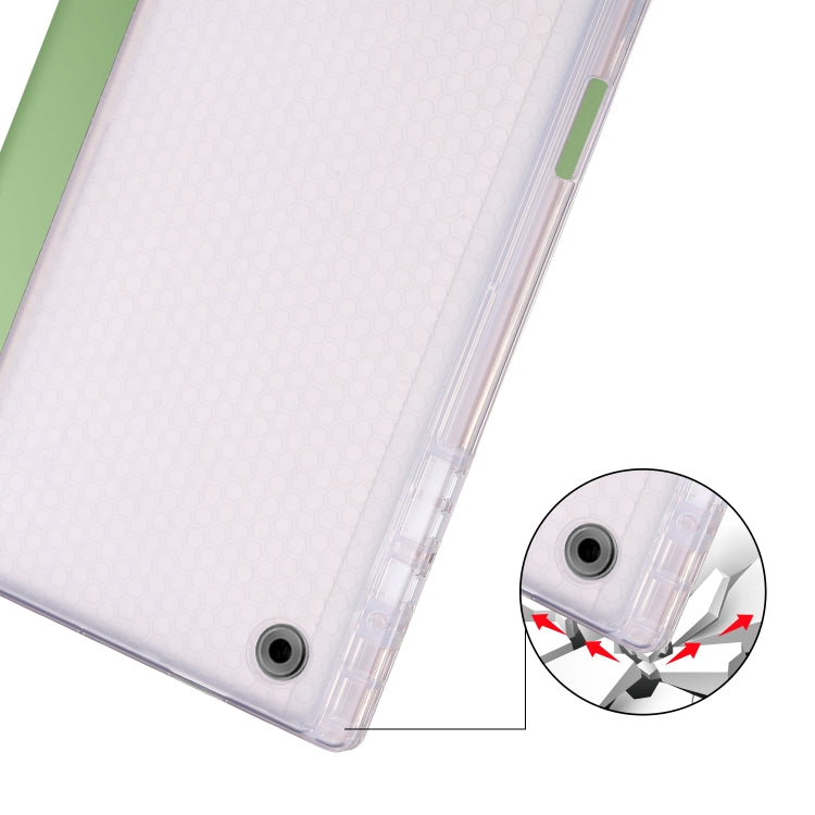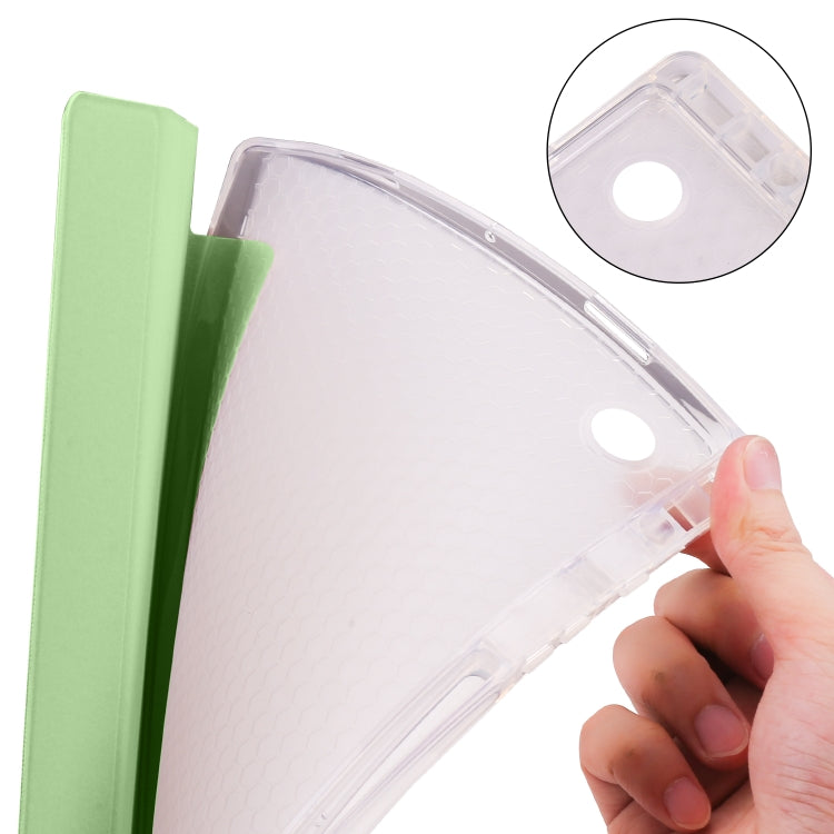 For Samsung Galaxy Tab A8 X200 Smart 3-folding Transparent Honeycomb TPU + Leather Tablet Case(Matcha Green)