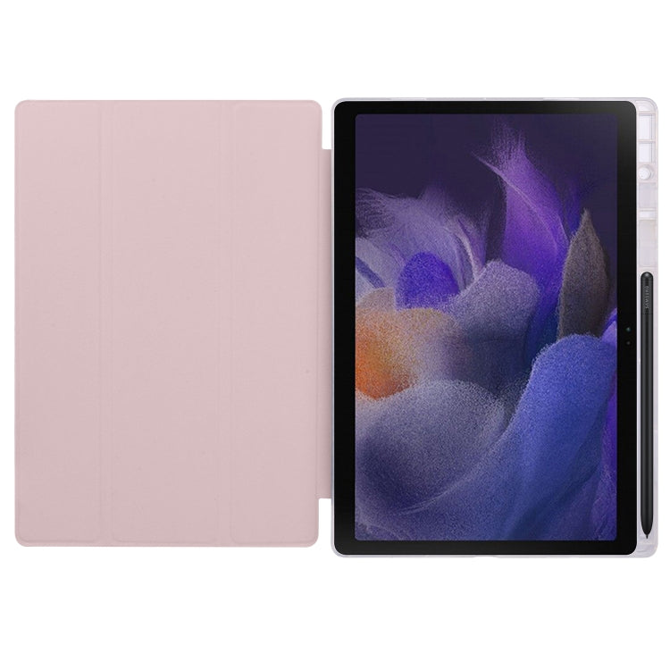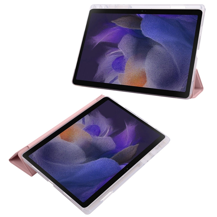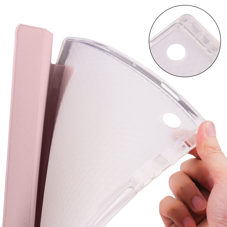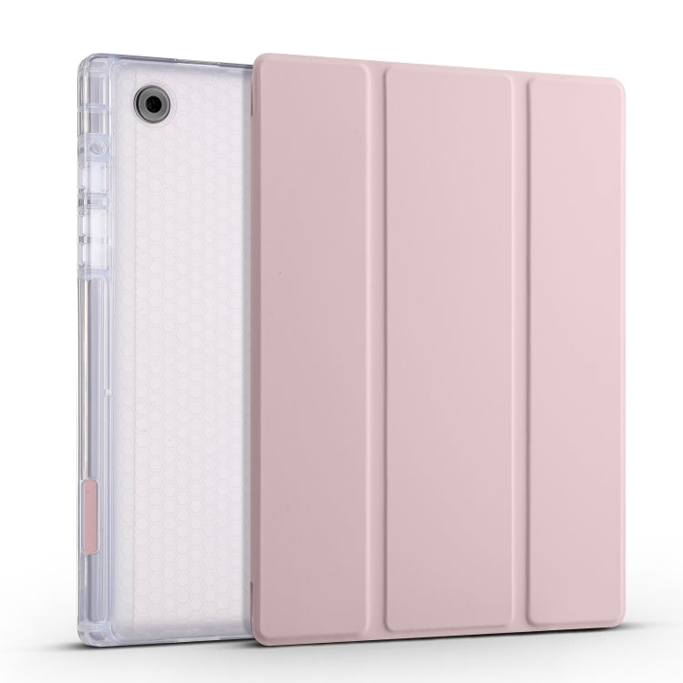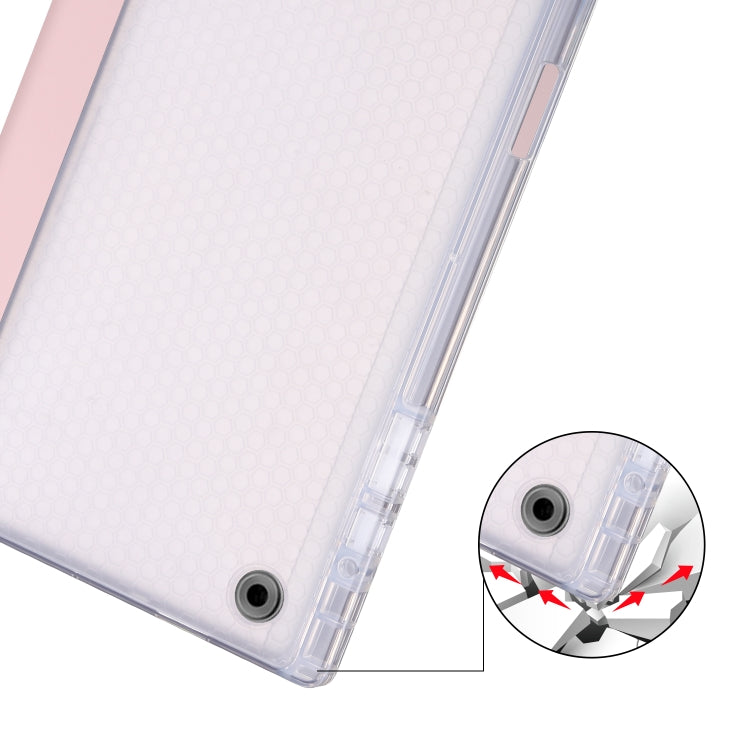 For Samsung Galaxy Tab A8 X200 Smart 3-folding Transparent Honeycomb TPU + Leather Tablet Case(Pink)