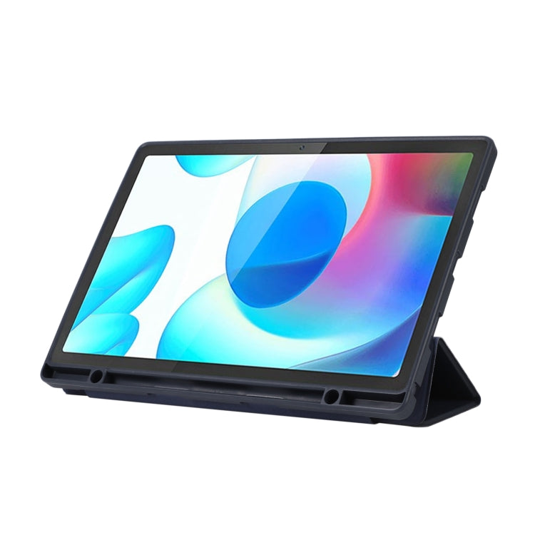 For Samsung Galaxy Tab A9+ 3-Fold Pure Color TPU Leather Tablet Case with Pen Slot(Dark Blue)