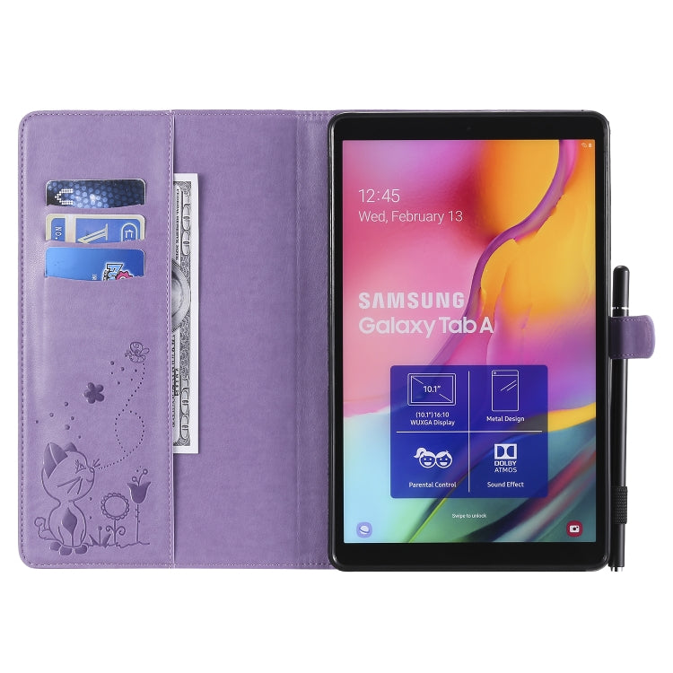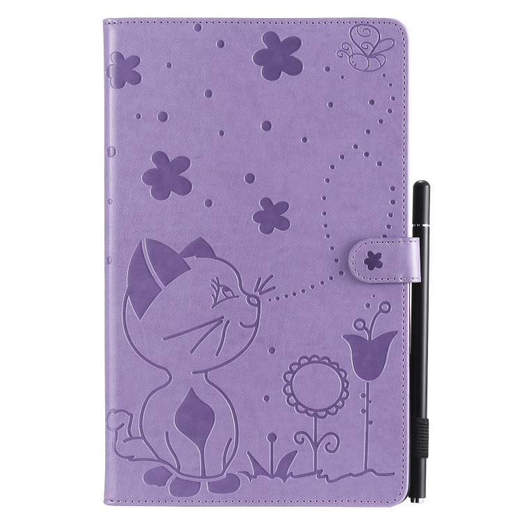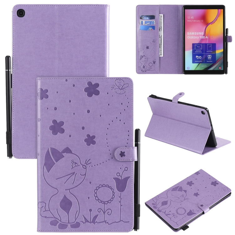 For Samsung Galaxy Tab A9.7 T550 Cat Bee Embossing Pattern Shockproof Table PC Protective Horizontal Flip Leather Case with Holder & Card Slots & Wallet & Pen Slot & Wake-up / Sleep Function(Purple)