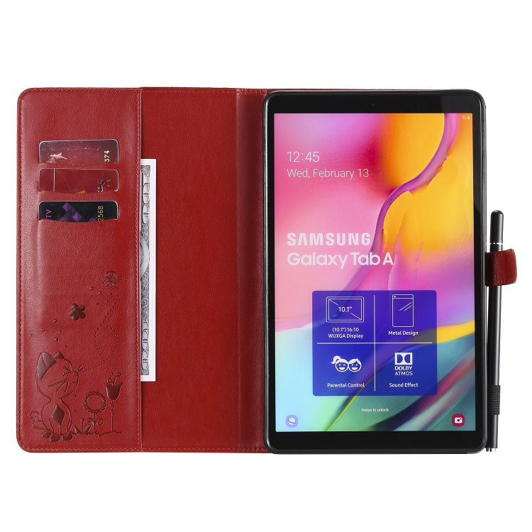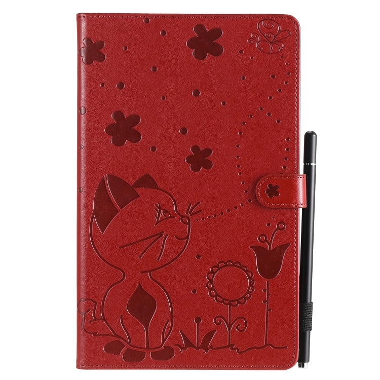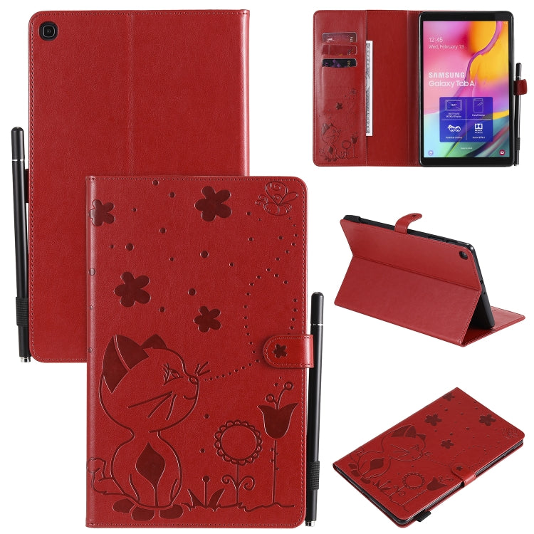 For Samsung Galaxy Tab A9.7 T550 Cat Bee Embossing Pattern Shockproof Table PC Protective Horizontal Flip Leather Case with Holder & Card Slots & Wallet & Pen Slot & Wake-up / Sleep Function(Red)