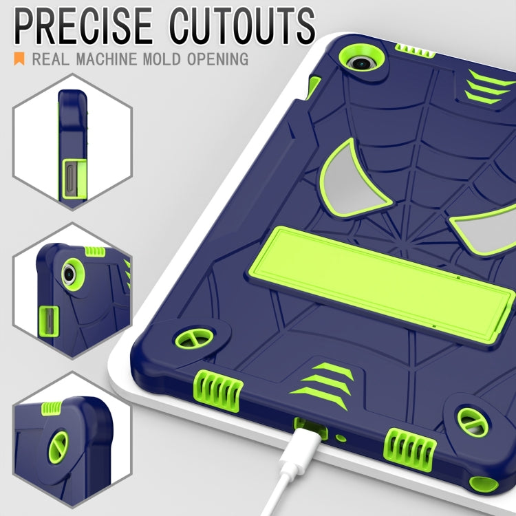 For Samsung Galaxy Tab A9+ Fold-Holder Spider Silicone Hybrid PC Tablet Case(Navy Yellow Green)