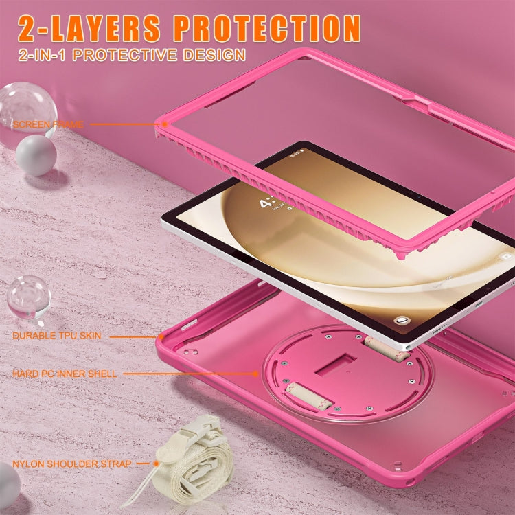 For Samsung Galaxy Tab A9+ X210/X215 Powerful Sailor Hand Grip Heavy Duty Hybrid Tablet Case with Strap(Rose Red)