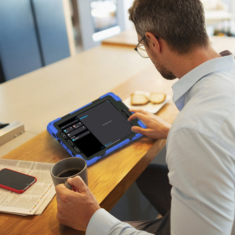 For Samsung Galaxy Tab active 3 T570 / T575 8.0 Shockproof Colorful Silicone + PC Protective Case with Holder & Shoulder Strap & Hand Strap(Blue)