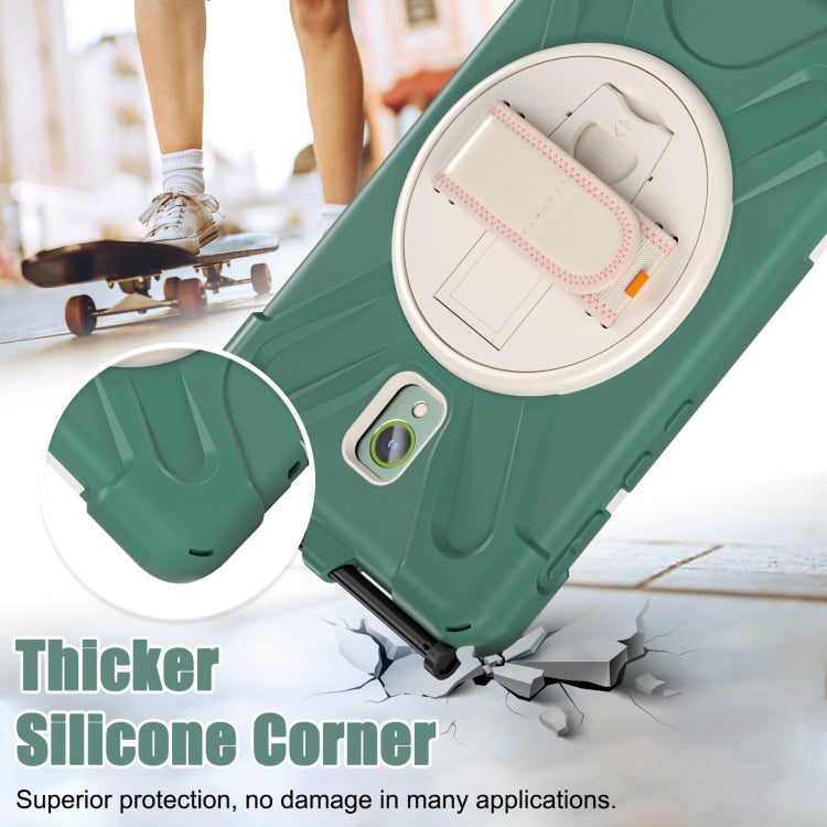 For Samsung Galaxy Tab Active5 X300 Rotary Grip Silicone Hybrid PC Tablet Case with Shoulder Strap(Emerald Green)