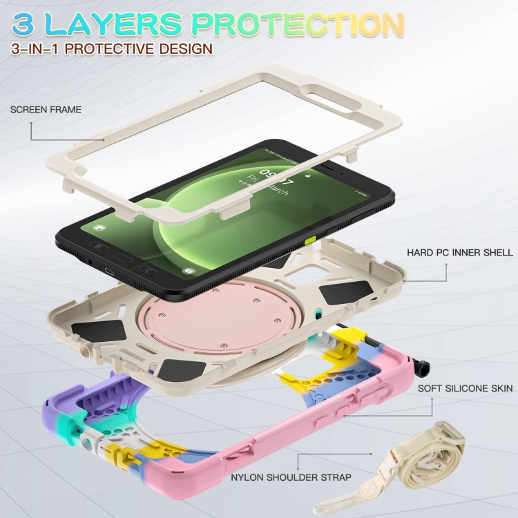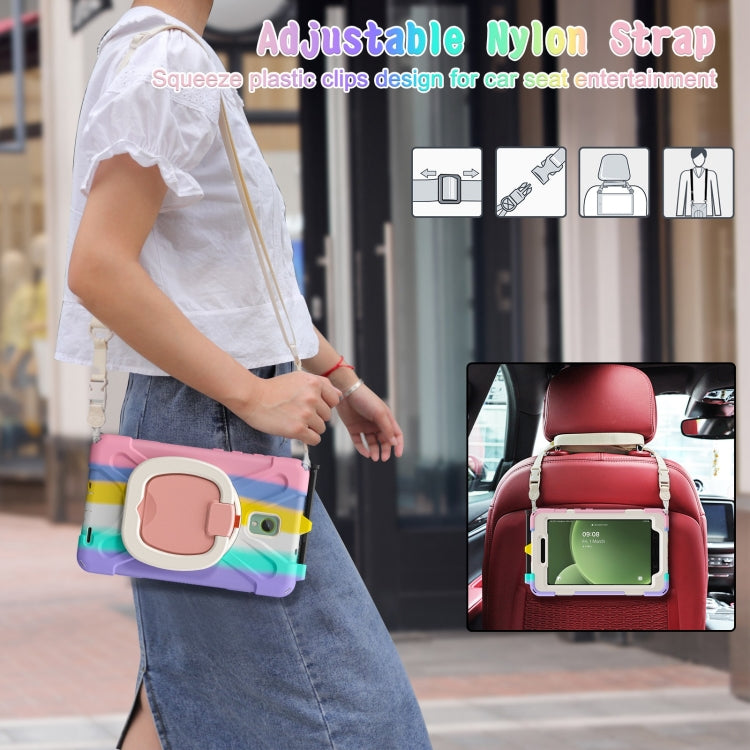For Samsung Galaxy Tab Active5 X300 Silicone Hybrid PC Tablet Case with Holder & Shoulder Strap(Colorful Pink)