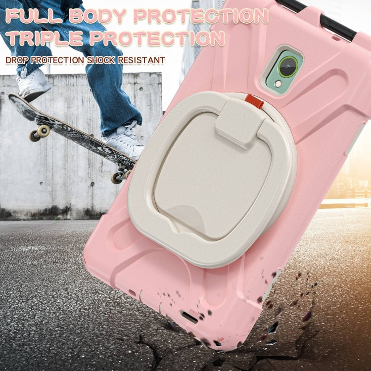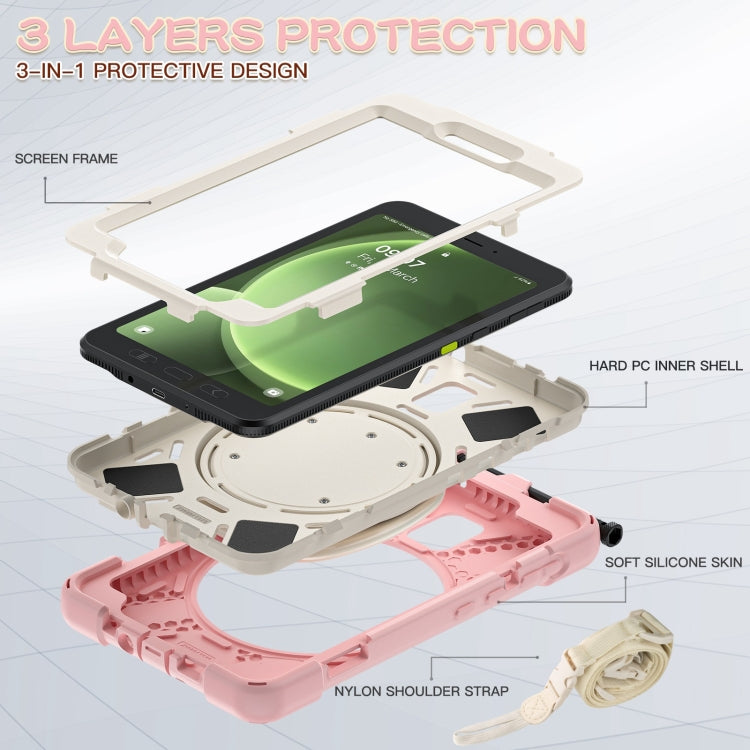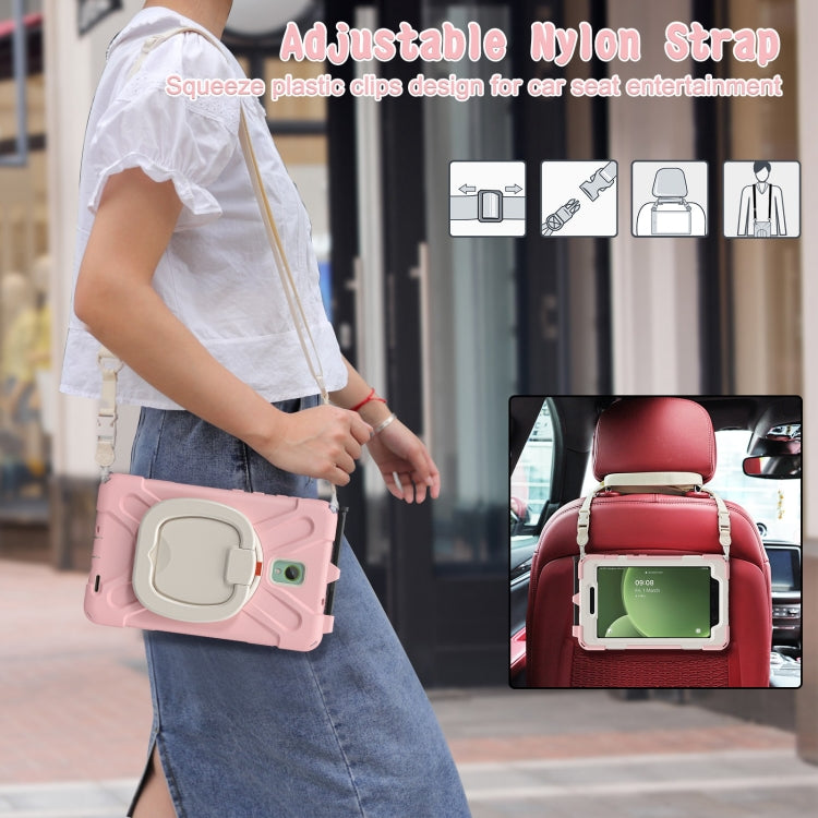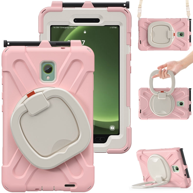 For Samsung Galaxy Tab Active5 X300 Silicone Hybrid PC Tablet Case with Holder & Shoulder Strap(Pink)