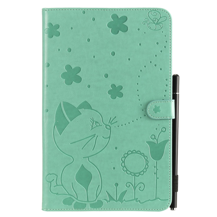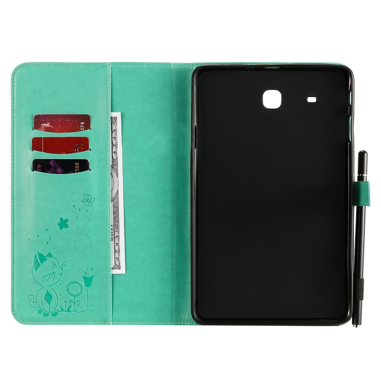 For Samsung Galaxy Tab E9.6 T560 Cat Bee Embossing Pattern Shockproof Table PC Protective Horizontal Flip Leather Case with Holder & Card Slots & Wallet & Pen Slot(Green)