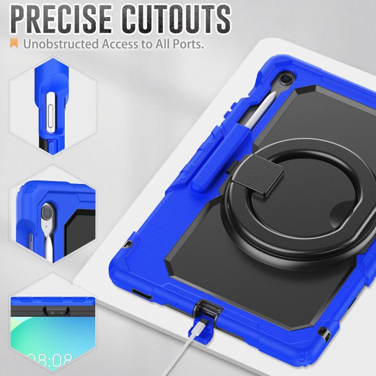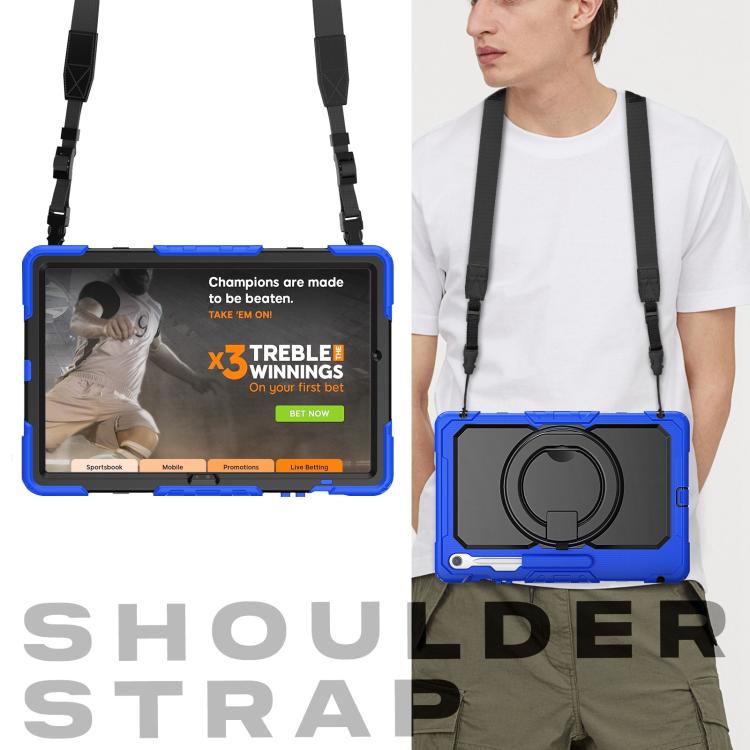 For Samsung Galaxy Tab S10 FE+ D Type Silicone Hybrid PC Tablet Case with Handle Holder(Blue)