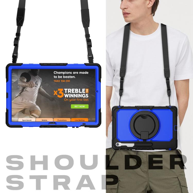 For Samsung Galaxy Tab S10 FE+ D Type Silicone Hybrid PC Tablet Case with Handle Holder(Blue PC)
