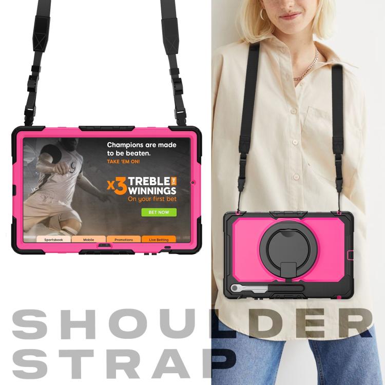 For Samsung Galaxy Tab S10 FE+ D Type Silicone Hybrid PC Tablet Case with Handle Holder(Rose Red PC)