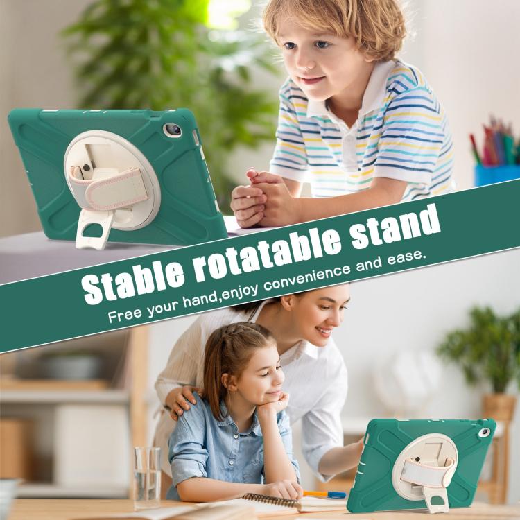 For Samsung Galaxy Tab S10 FE+ Rotatable Kickstand Grip Heavy Duty Hard Rugged Tablet Case(Emerald Green)