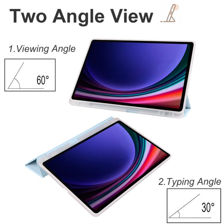 For Samsung Galaxy Tab S10 FE / S9 3-folding Transparent TPU Smart Leather Tablet Case with Pen Slot(Ice Blue)