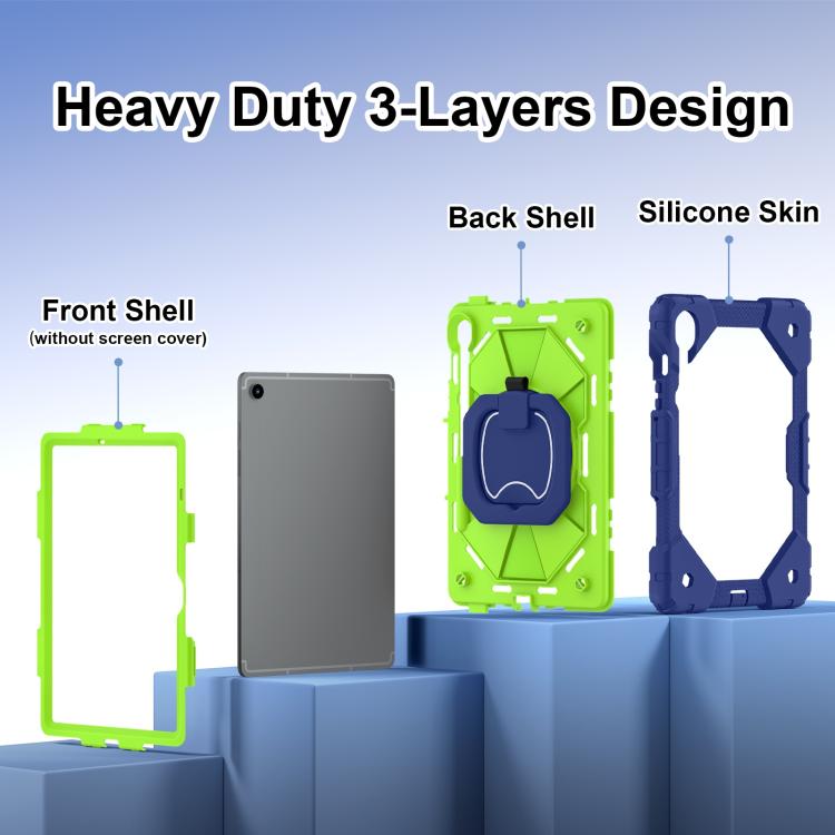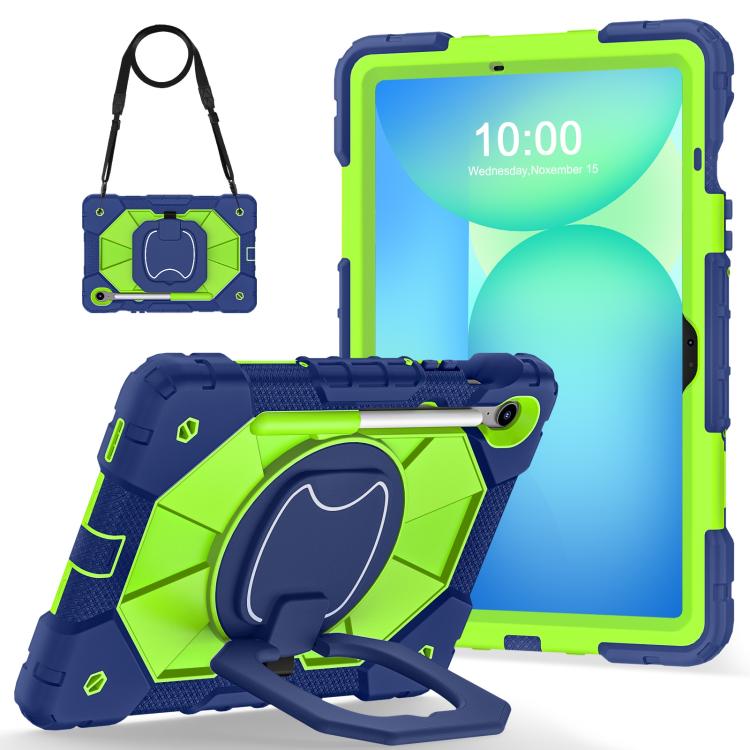 For Samsung Galaxy Tab S10 FE / S9 Contrast Color Robot Silicone Hybrid PC Tablet Case(Navy Yellow Green)