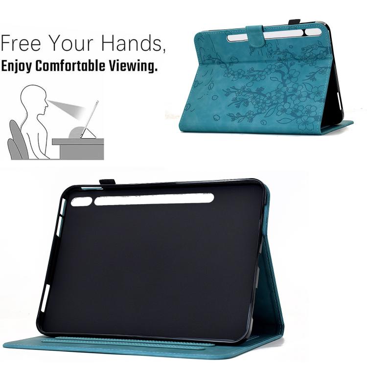 For Samsung Galaxy Tab S10 FE / S9 FE Plum Blossom Embossed Smart Leather Tablet Case(Light Blue)