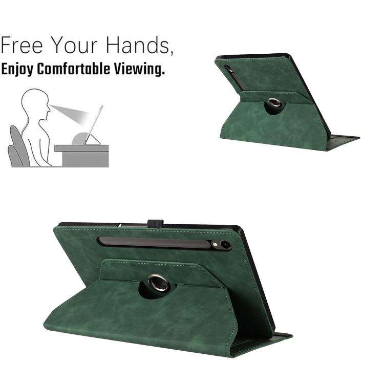 For Samsung Galaxy Tab S10 FE / S9 Smile Embossed Rotation Holder Leather Smart Tablet Case(Green)