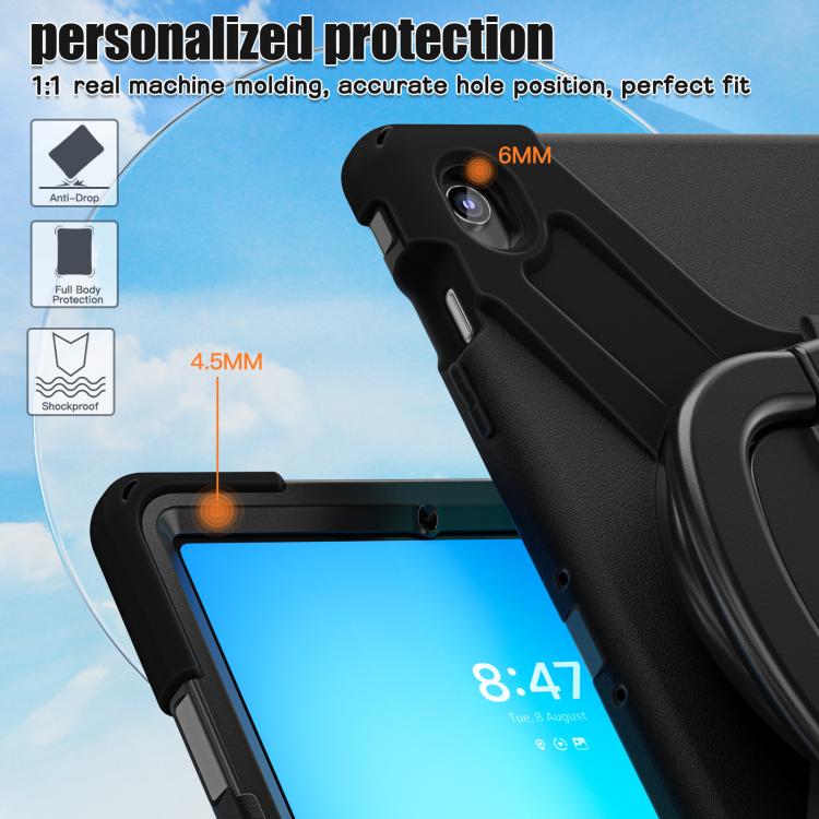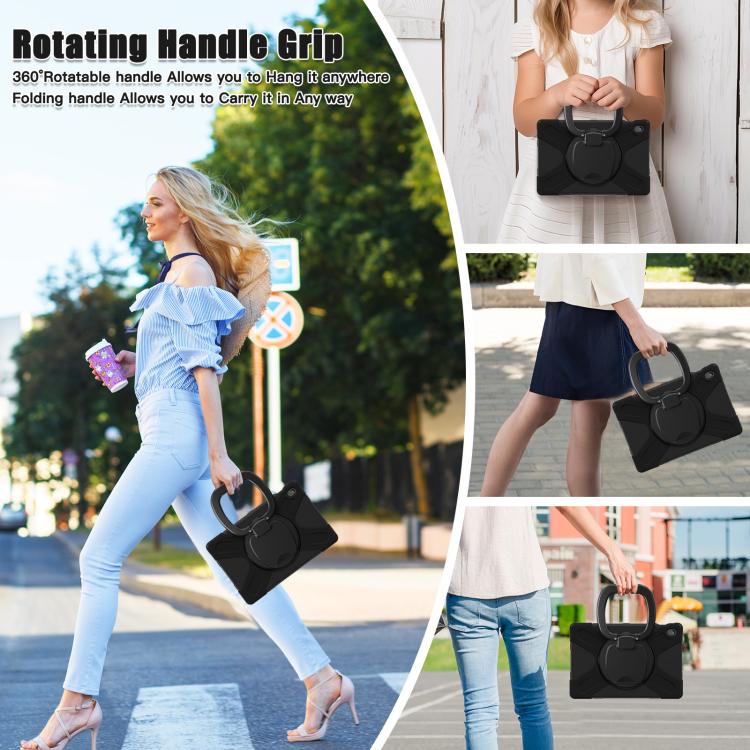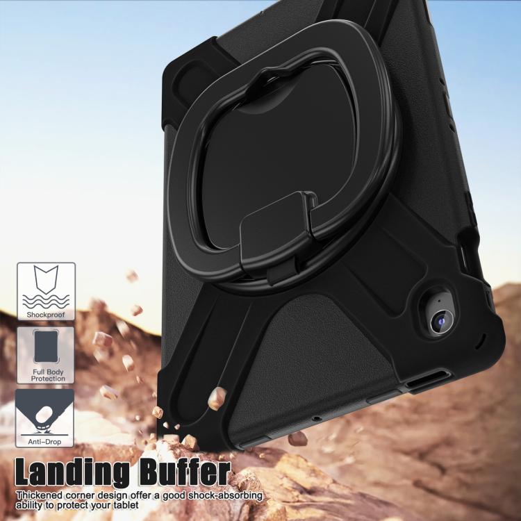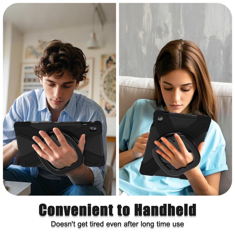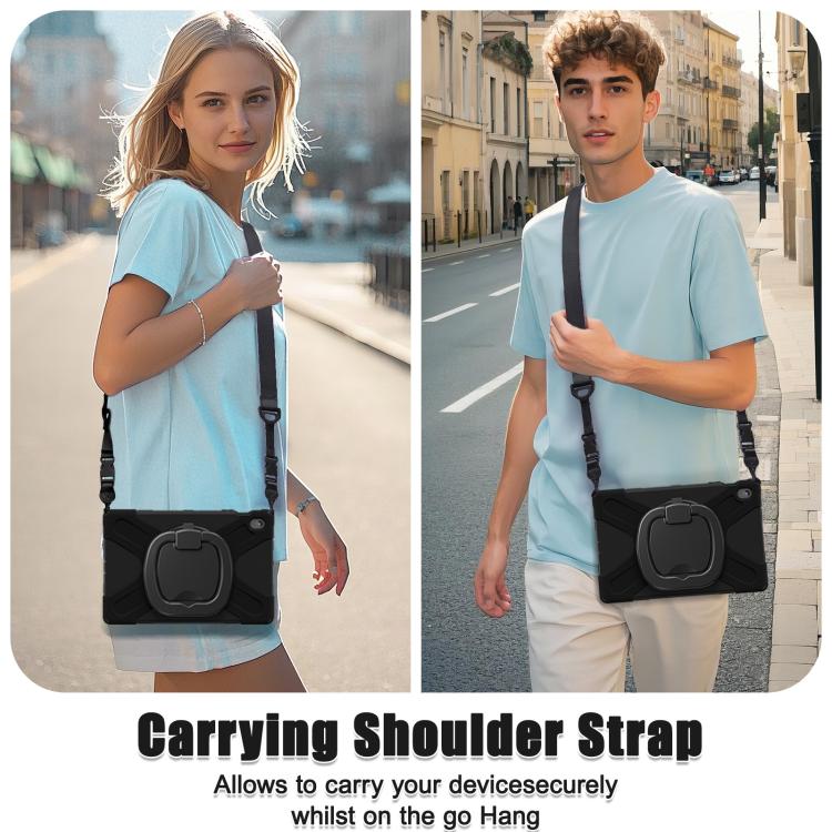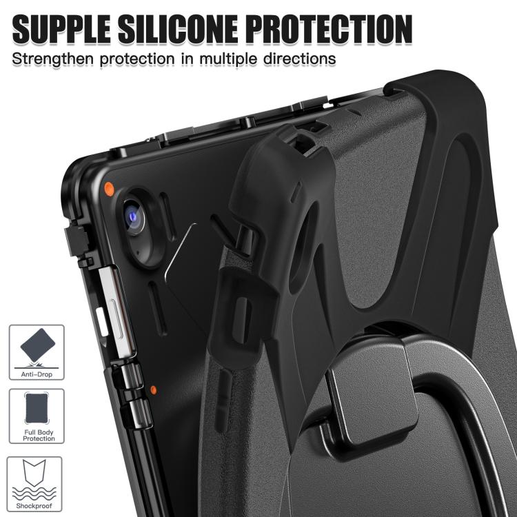 For Samsung Galaxy Tab S10 FE+ Silicone Hybrid PC Tablet Case with Holder & Shoulder Strap(Black)